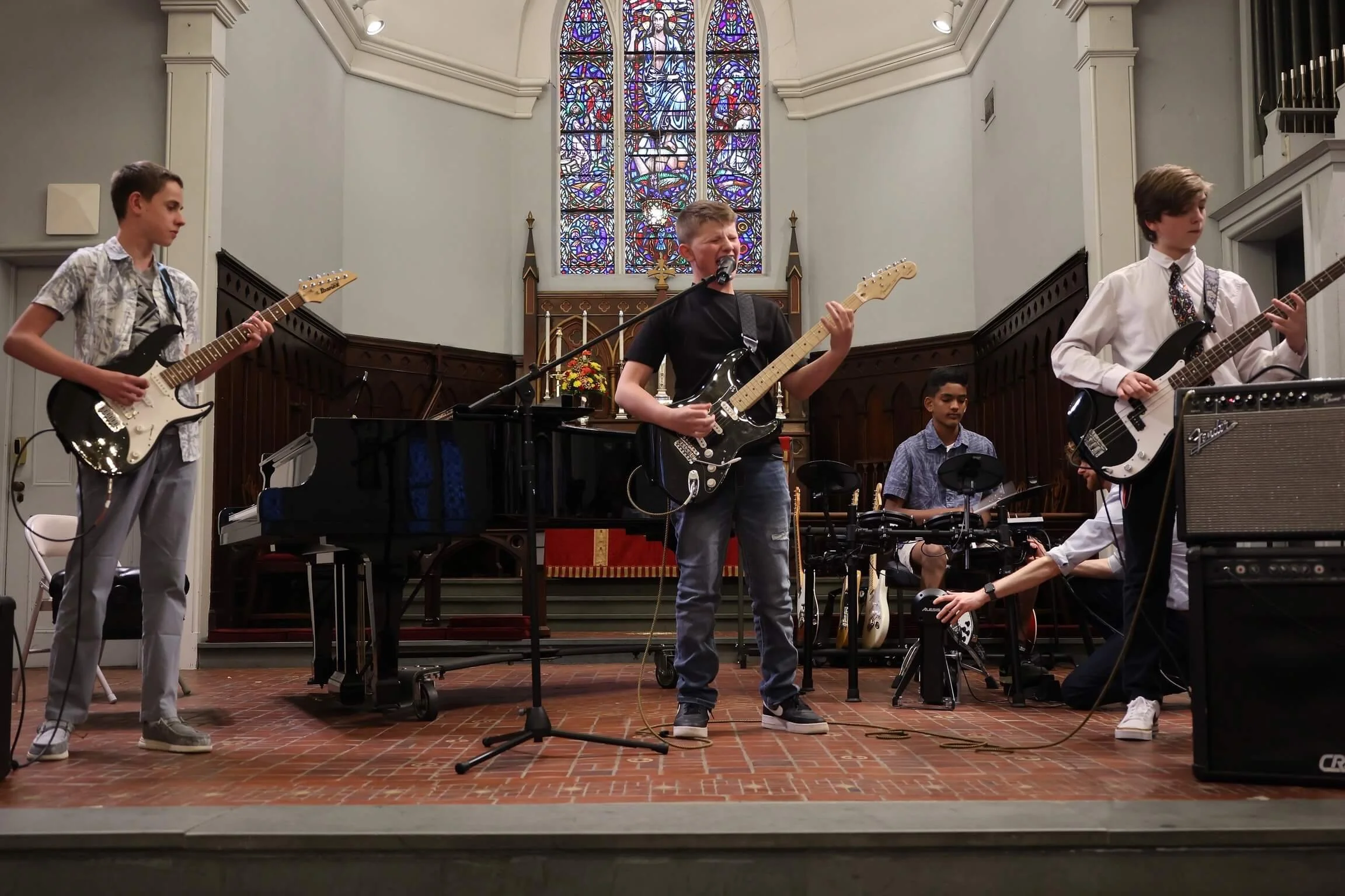 Our instructors curate an exciting repertoire spanning multiple eras and genres, and students play the instrument of their choice as they learn their parts with expert, hands-on guidance. In this high-energy, collaborative environment, students develop performance skills, creative confidence, and the kind of teamwork that only comes from making music together.